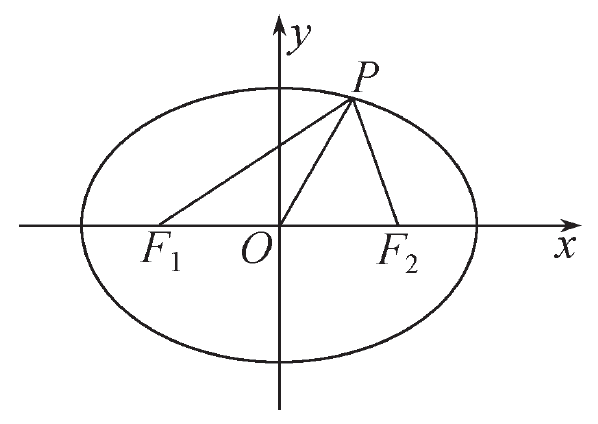 (1)如图,连结\(PF_1\),由\(\vert PF_2\vert=\vert OP\vert\)\(=\vert OF_2\vert\)\(=\vert OF_1\vert = c\)可知\(\angle F_1PF_2 = 90^{\circ}\)\(\vert PF_1\vert=\sqrt{3}c\),因此\(\vert PF_1\vert+\vert PF_2\vert=(\sqrt{3}+1)c = 2a\)